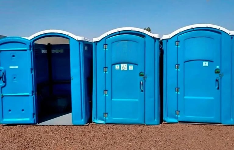 Banheiros químicos disponíveis para obras e eventos, garantindo conforto e higiene.